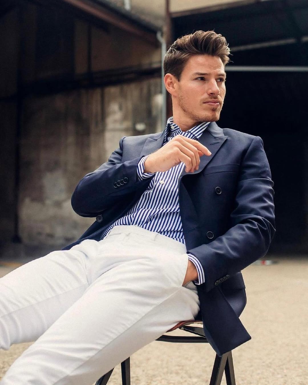 Homme Bruce Field Chemise Benton cintrée en pur coton à rayures blanches Dallas
