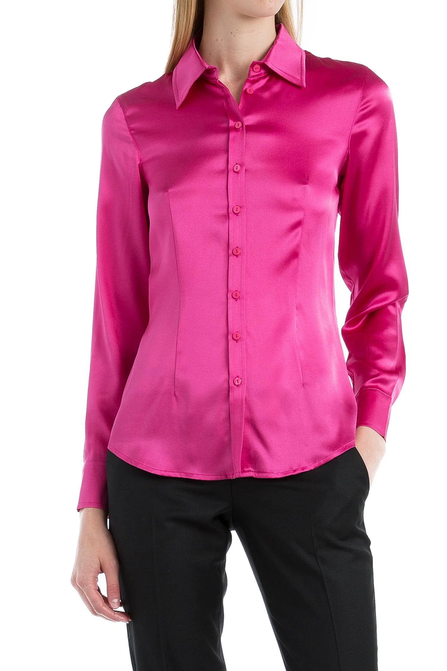 Chemisier cintré en soie satinée extensible