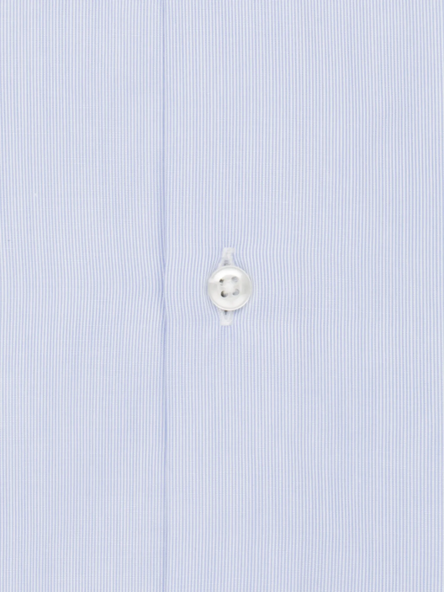 Chemise homme Benton Monarques cintrée en pur coton double retors Fine rayures. Modèle emblématique de la marque Bruce Field, la chemise Benton se distingue par sa coupe cintrée et son col classique à un bouton. Les deux pinces au dos cintrent la chemise pour conférer une allure élancée et moderne. Avec son col classique, cette chemise est parfaitement adaptée aux cravates, qu’elles soient larges ou fines, ainsi qu’au port du noeud papillon.